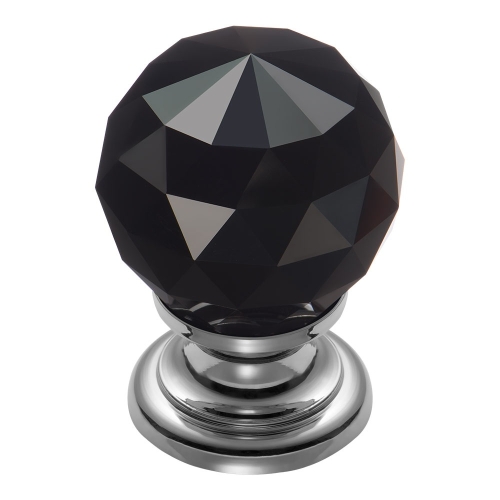 Ручка кнопка GZ-CRPC40-A1, материал Замак Стекло, цвет Черный, отделка Стекло Хром Черный, 54*d=40 мм